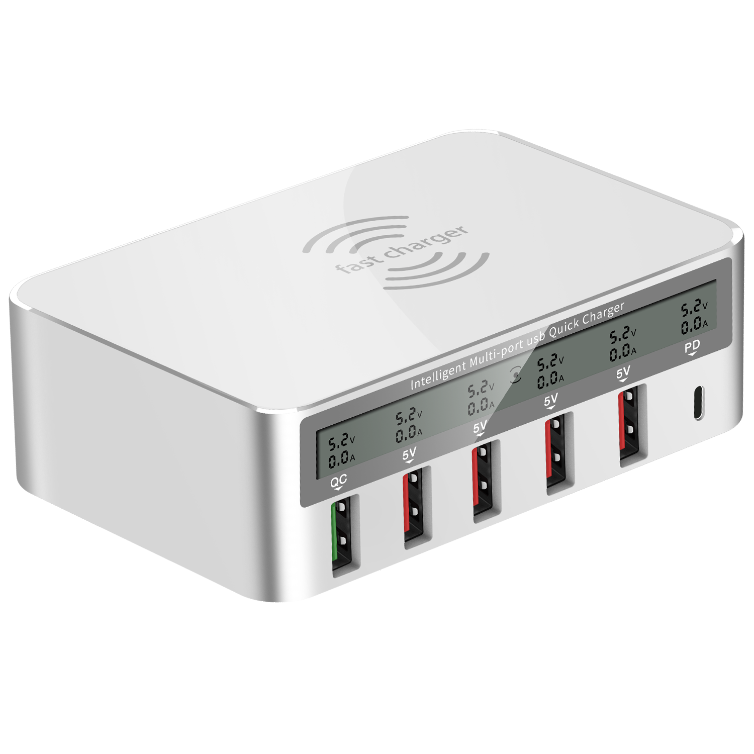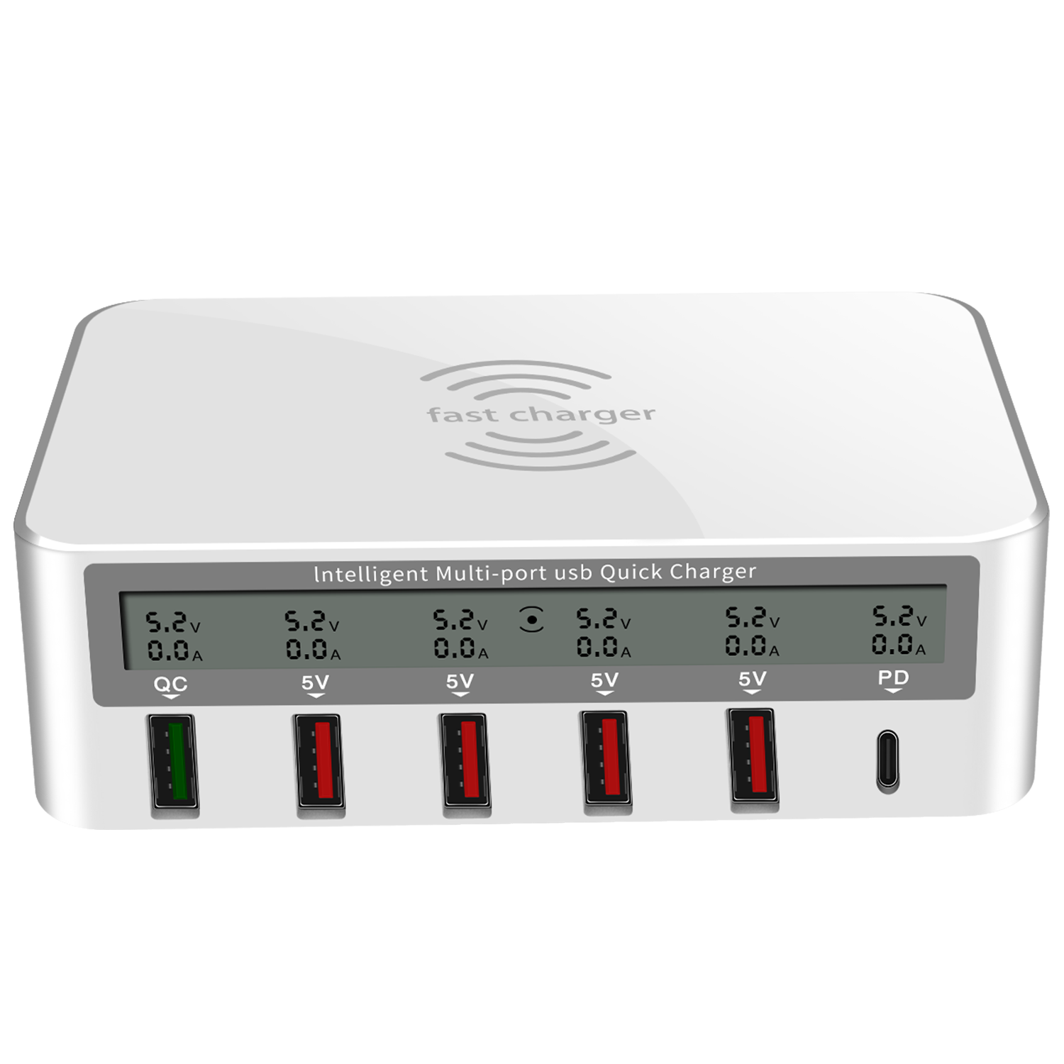 Intelligent multi-port usb quick charger 15W wireless charging station smart USB display 100W fast charger